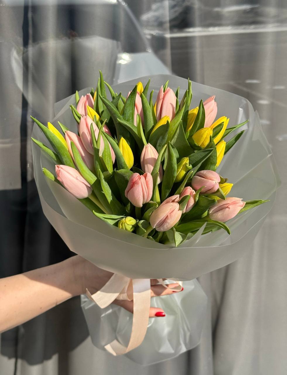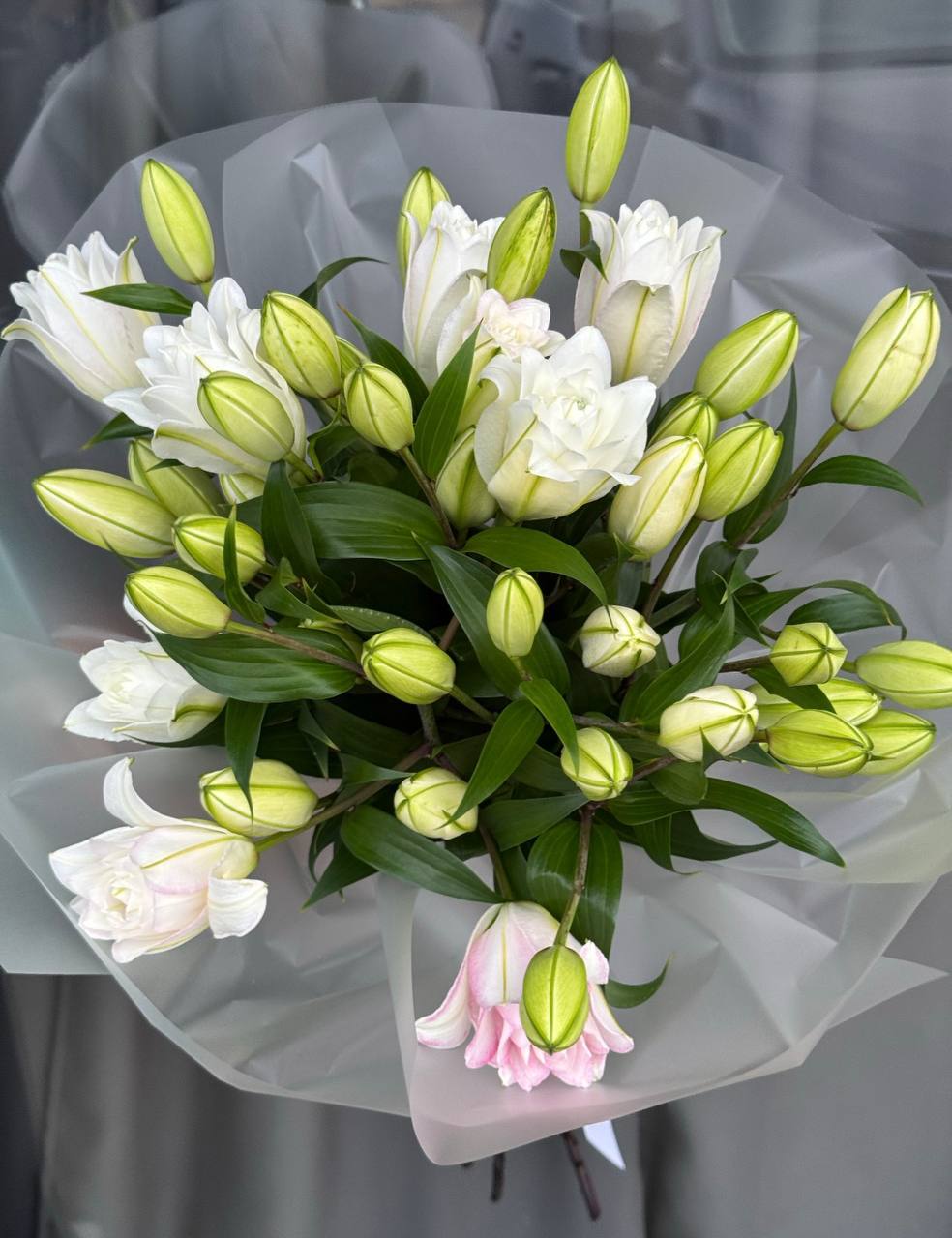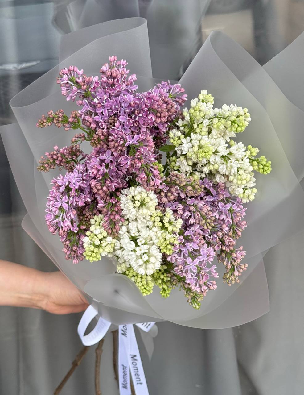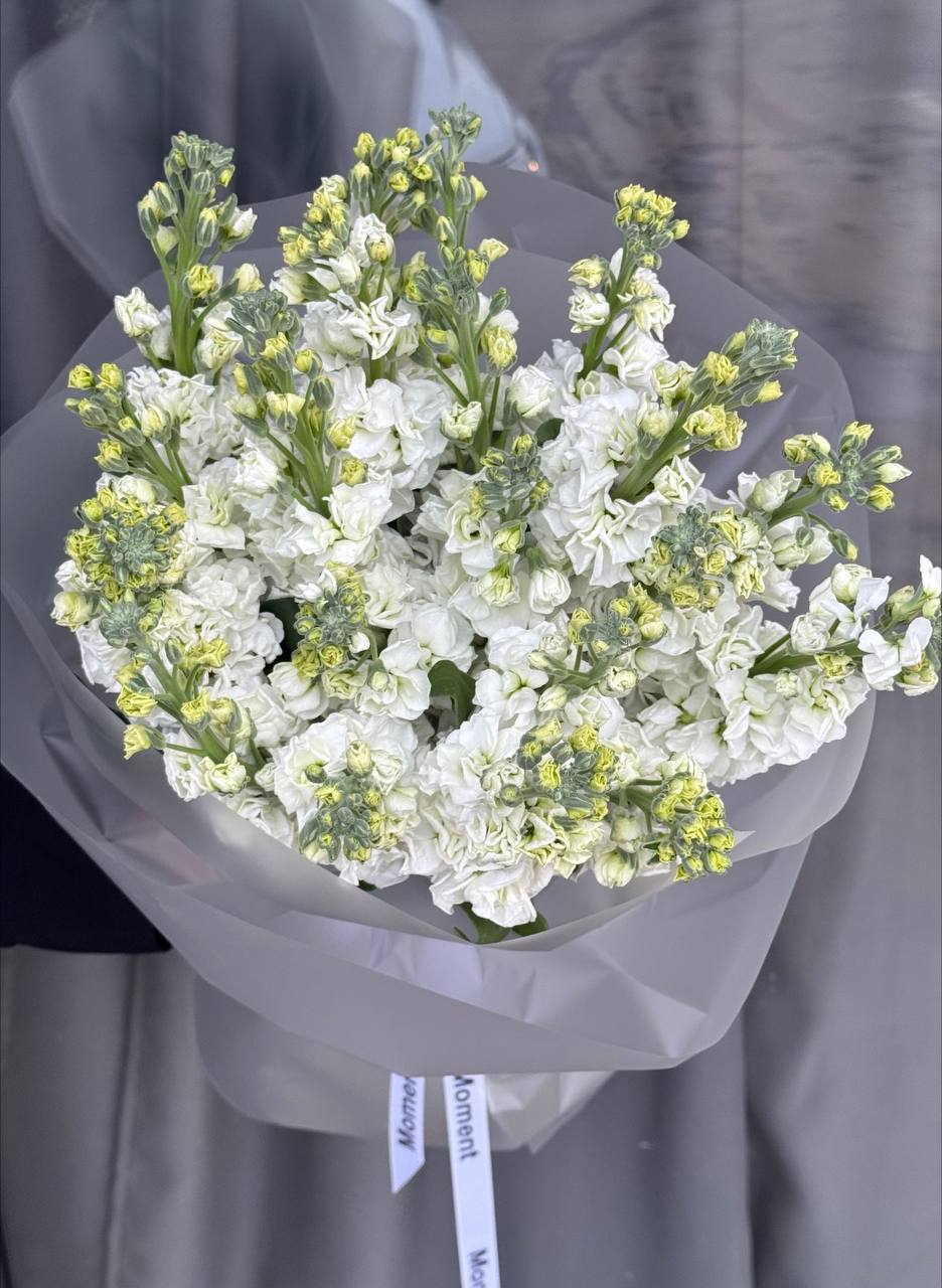Монобукет ранункулюсов в полупрозрачной упаковке — лаконично и стильно.